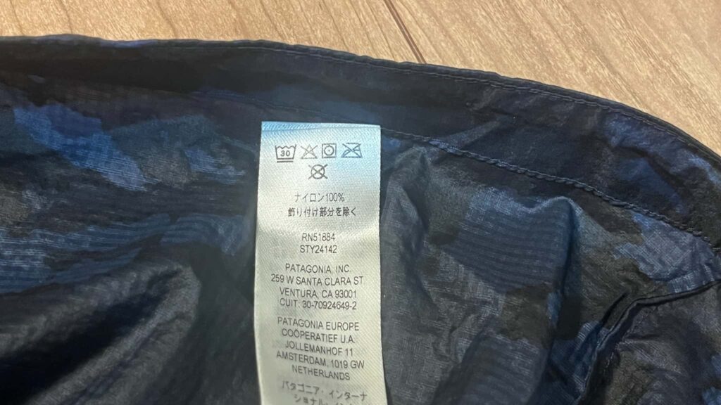 パタゴニアらしく素材はリサイクルナイロン100%になっています。