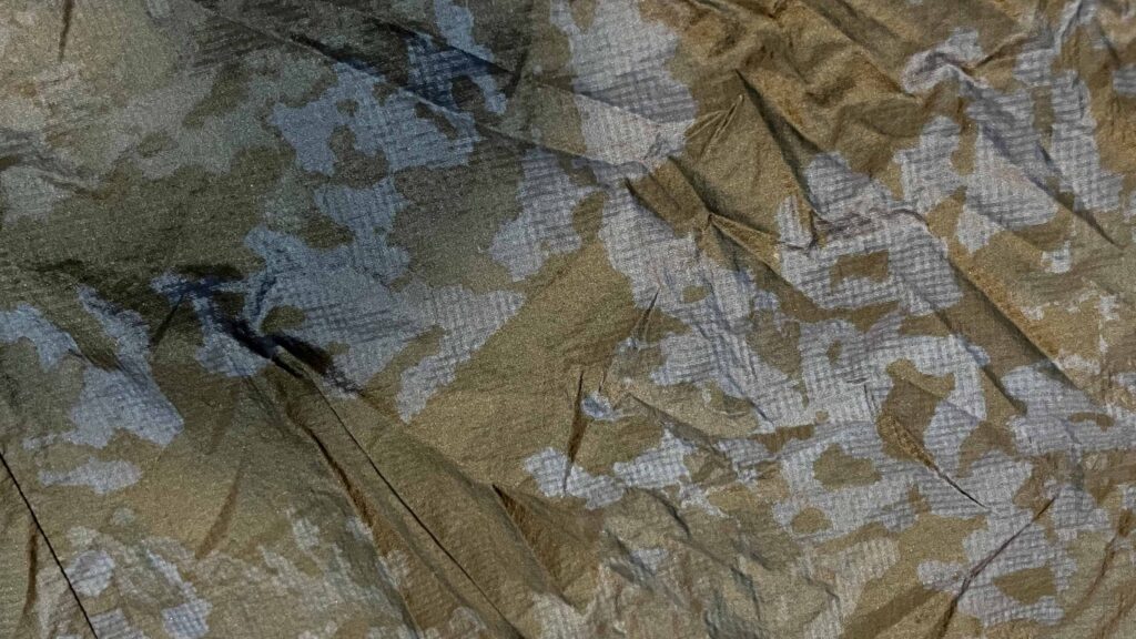 これがリップストップと呼ばれる構造で、枝等に引っ掛かった際にビリビリと破れてしまうところをそれ以上破れなくなるようストップしてる機能です。