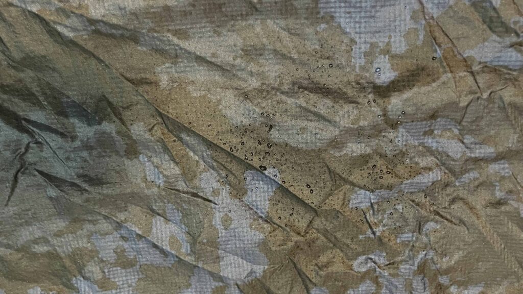 この撥水加工は有機フッ素化合物不使用のDWR(耐久性撥水)です。