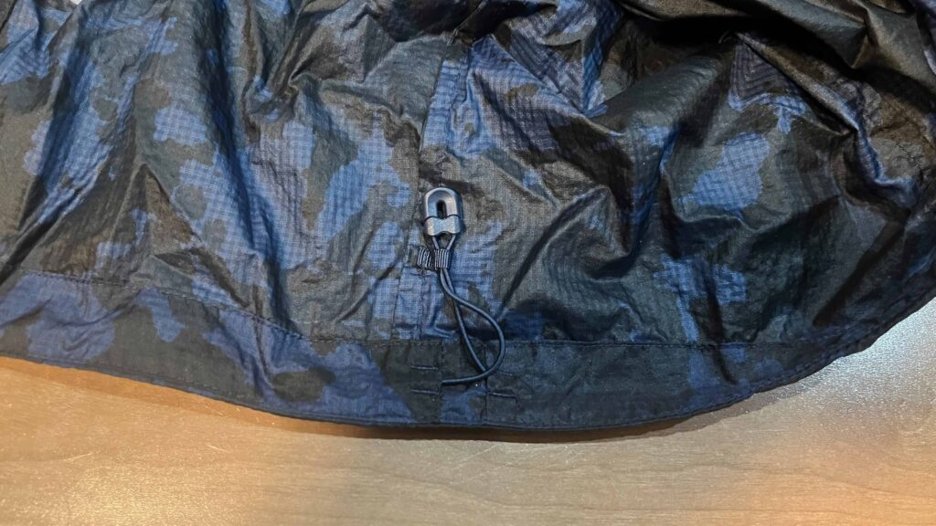 裾部のドローコードは風が強い日や肌寒い時などに締めることで外気をシャットアウトする事が出来ます。