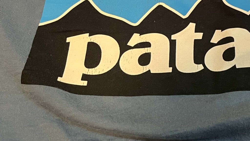 毎年趣向を凝らしたデザインのTシャツが販売されているパタゴニアTシャツの定番商品でもあり、ちゃんさわが所持しているのはP-6ロゴと呼ばれるパタゴニアの定番デザインです。